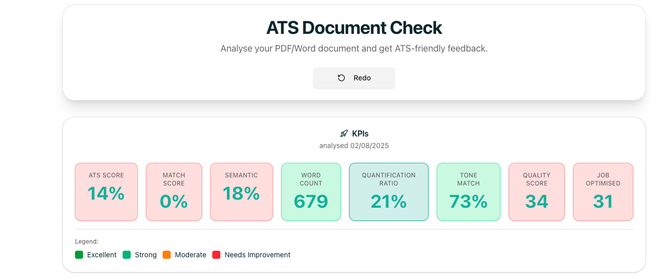 No guesswork. No edits made to your file. Just a clear snapshot of how your résumé is interpreted so you can decide your next move with confidence.
