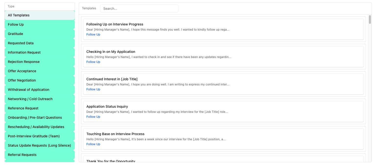 Write clear, confident messages in seconds. Browse proven templates for every stage of the process, auto personalize them with role and contact details, and send with the right tone so you always make a strong impression.